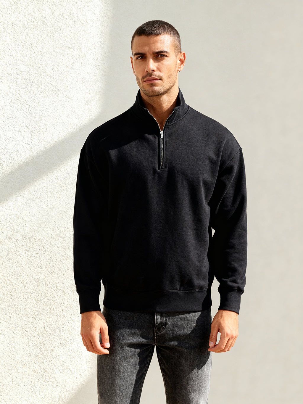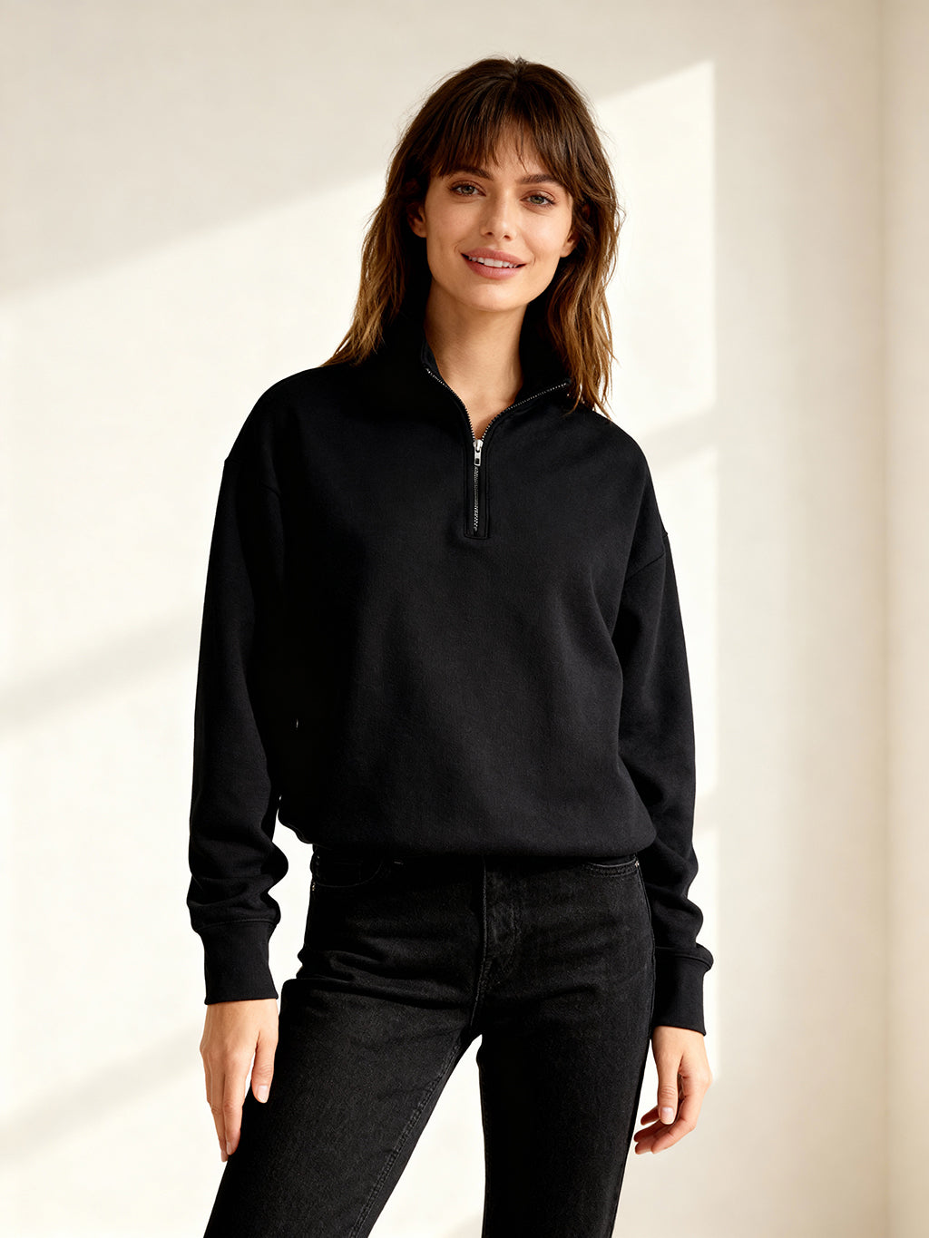 - self fabric lined collar with quarter zip closure